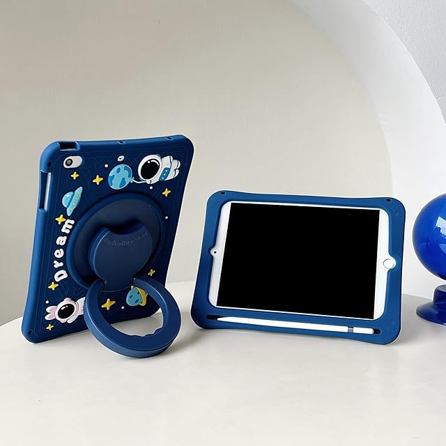 CrazyLemon 適用 iPad Air 1世代 9.7インチ ケース 360度回転 リング付き スタンド機能 ペン収納 肩掛け ストラップ 付き 可愛い かっこいい うさぎ 宇宙飛行士 デザイン 薄型 軽量 ソフト シリコーン アイパッド エア 第1世代 保護 ケース カバー 耐衝撃 女性/男性 大人/子供 人気