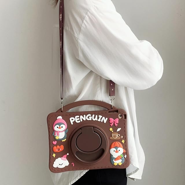 CrazyLemon 適用 iPad Air3 2019 ケース iPad Pro 2017 10.5インチ ケース かわいい 360度回転 リング付き スタンド機能/ショルダー ストラップ/ペン収納 ホルダー 付き、 可愛い おしゃれ ペンギン デザイン 薄型 ソフト シリコーン アイパッド 保護 ケース カバー 耐衝撃 女性/男性 大人/子供 人気