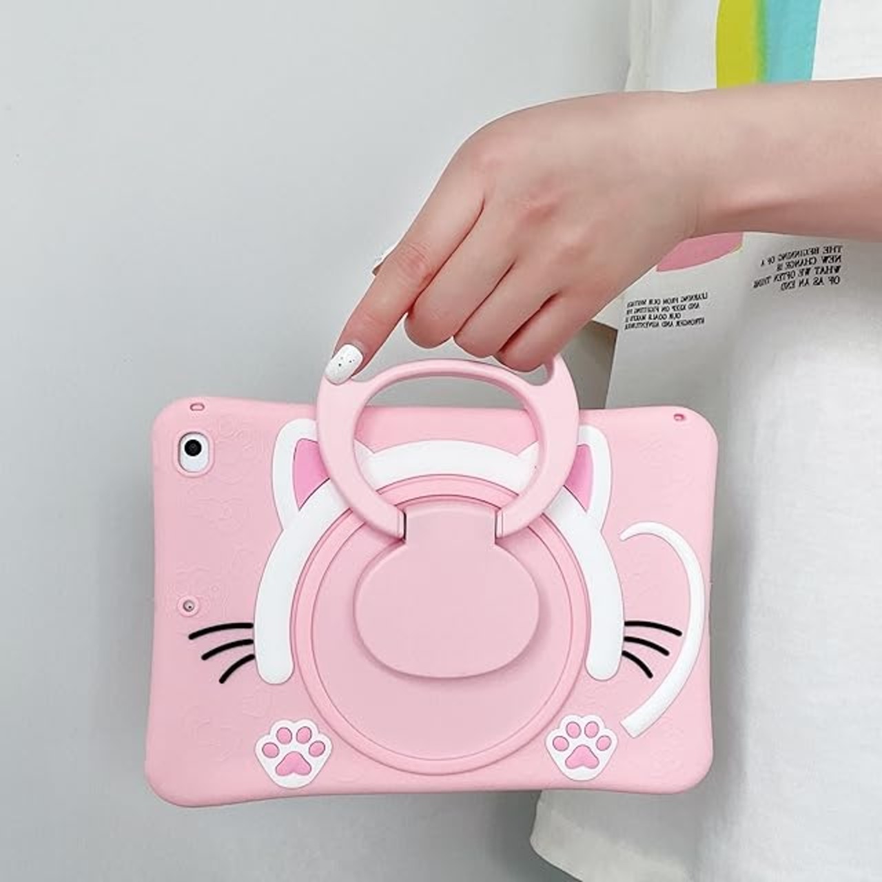 CrazyLemon 適用 iPad Mini 5/4 ケース 360度回転 リング付き 縦置き 横置き スタンド機能 付き 可愛い 白い 猫の耳 デザイン 薄型 軽量 ピンク ソフト シリコーン アイパッド ミニ 第5/4世代 保護ケース カバー 衝撃吸収 女性/女の子 大人/子供 人気