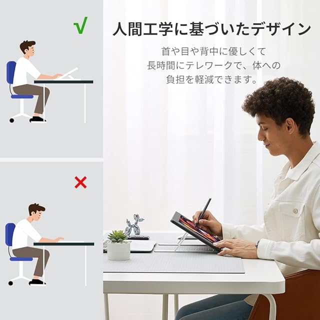 人間工学に基づいたデザイン、正しい姿勢で頭部が下がるのを防ぎ、作業時の目の高さを改善し、首の負担を軽減します。より快適に、健康的に創作することができます。