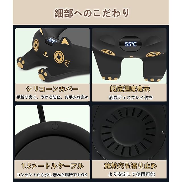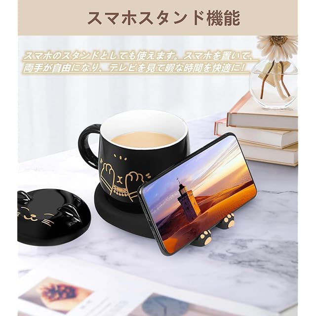 猫模様 カップウォーマー 45℃-70℃ コーヒーウォーマー ドリンクウォーマー 3段階温度調節 保温時間設定可能 カップ ウォーマー スマホスタンド機能 自動電源OFF マグカップウォーマー マグウォーマー 液晶画面 プレゼント かわいい