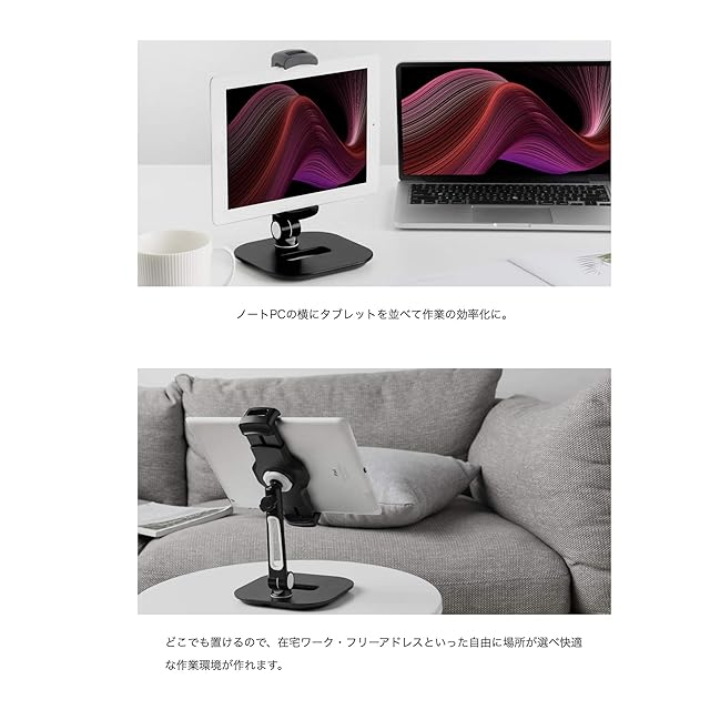 タブレットやスマホを常に見やすい位置や高さに保てるので、ビデオ会議やビデオ通話に役立ちます。