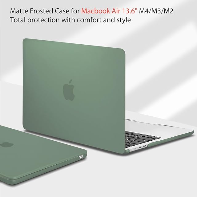 Teryeefi 2022 2024 2025 MacBook Air 13.6 インチ ケース A2681/A3113/A3240 対応, 軽量 耐衝擊 保護カバー&JIS日本語 キーボードカバー&液晶保護フィルム MacBook Air 13 M2 M3 M4 カバー,つや消しアルパイングリーン | AVENIR