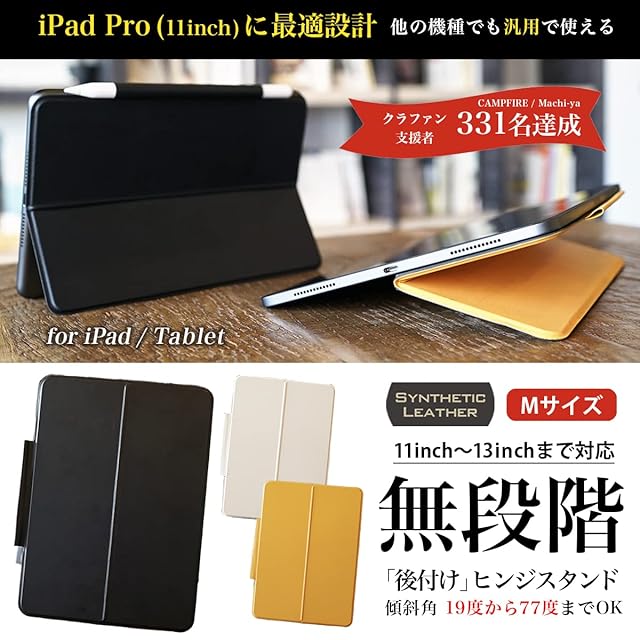【薄くスリム】Mサイズスタンドは、iPad Pro 11inchの筐体サイズに合わせて設計。薄さは約4mm。薄くスリムなので、iPad等のタブレット端末と抜群の一体感に。