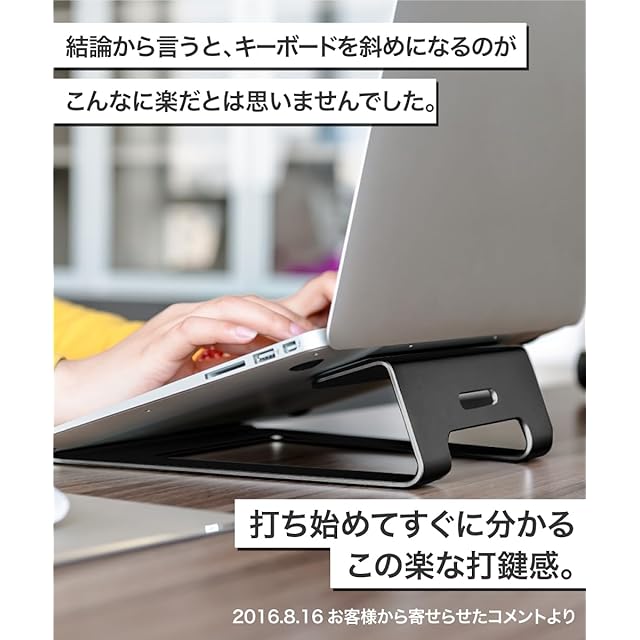 シンプルで美しいフォルムを追究したノートPC向けアルミスタンド。滑らかなカーブとアルミのソリッドな質感は、スタイリッシュなデスク環境を構築するのに最適です。