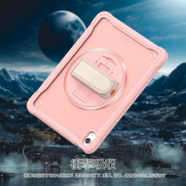 ProCase iPad 11世代/10世代 ショルダーケース iPad(A16)11インチ 2025/10.9インチ 2022通用 肩掛け式 子供用 耐衝撃 半透明カバー ペン収納 360°回転スタンド 手首付き 3層保護(ピンク) | AVENIR