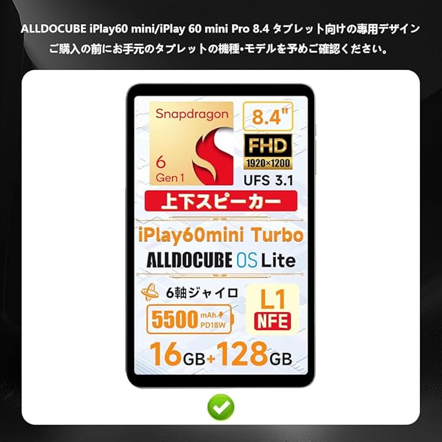 【機種】alldocube iplay 60 mini Turbo/iplay60 mini pro 専用設計ですから、ケースを付けたまま各ボタン・機能の操作が便利にできます