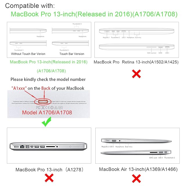適応モデル:これはMacbook Pro 13インチ(2016/2017/2018/2019/2020モデル)と MacBook Air 13インチ2018/2019/2020 設計のカバーです。他の機種の場合は、上記のモデルとサイズを比較してください