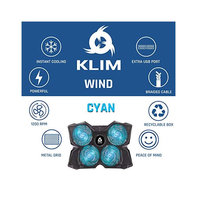 KLIM Wind ラップトップ冷却パッドゲームラップトップ冷却ファンクーラークーラーUSB。 PS5(シアン)と互換性があります