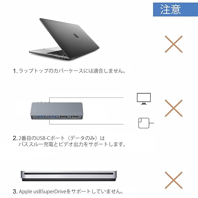 【プラグアンドプレイ】USB C Macbook ハブMacBook Air / Proに最適なコンパニオンで生産性を向上させます。注:ラップトップケースでの使用はお勧めしません! Apple USBスーパードライブをサポートしていません!