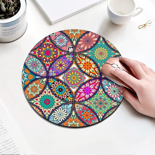 マウスパッド カラフルなマンダラのパターン 曼荼羅 花柄 丸型 おしゃれ かわいい 柔らかい ゴム製裏面 まうすぱっど 円形 滑り止め 耐久性が良い PCノートパソコン オフィス 勉強 学生 女性用 22cm