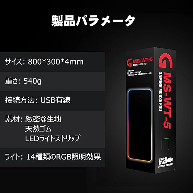 【超大型マウスパッド】800mm×300mm×4mmのサイズが十分な移動スペースを提供し、デスクトップとぴったり合っています。あらゆる種類のキーボードとマウスに適用され、ゲームや事務作業などにスムーズに行います。プラグ&プレイなので、USBで直接的にさし、使えます。柔らかく、自由に折りたたむことができ、変形しにくいです。利用しない時に、巻き取るだけでいいです。