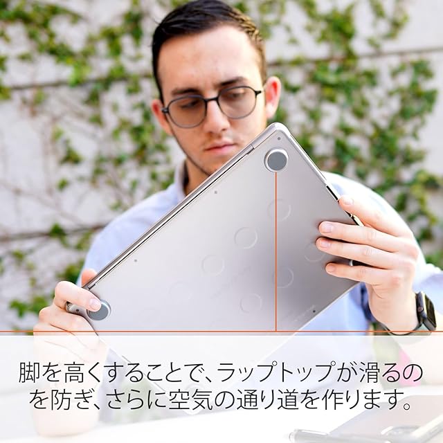 熱放散と強化されたグリップデザイン: 最適な熱放散を実現するように設計されており、要求の厳しい作業中でも MacBook Air を涼しく保ちます。滑り止めの質感がしっかりとしたグリップを提供し、偶発的な落下のリスクを軽減します。