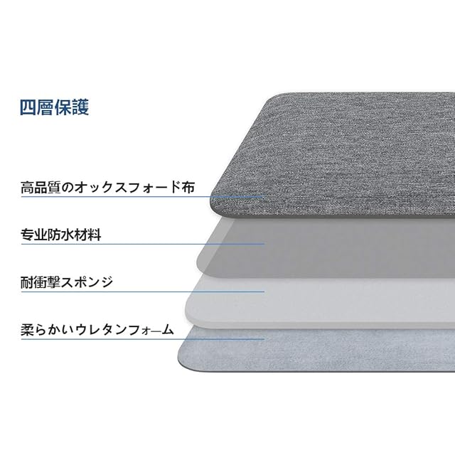 【高品質の材料】360度保護エッジとコーナーがあり、内側全体は柔らかな手触りの布地で覆われ、中に厚みのあるクッション素材が入っていて大切な機器を全方位から守りはしっかり。防水仕様で大切な機器を水滴からしっかりと守ります。
