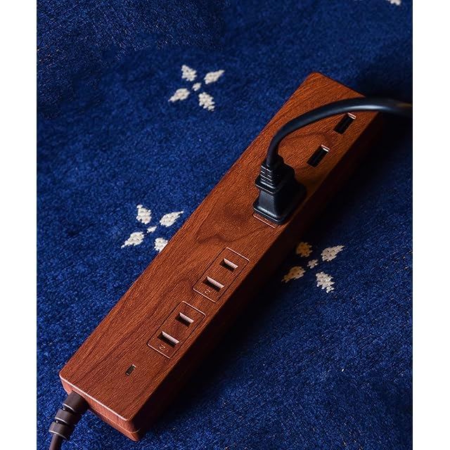 Fargo 電源タップ 節電 個別スイッチ AC3個 2.1A USB2ポート 木目調 ナチュラル インテリア デザイン プラグ 便利 シンプル 雷ガード付 雷サージ コード 2m ダークウッド | AVENIR