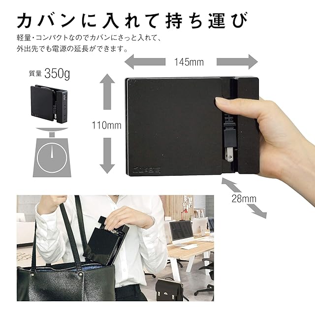 IAKTD エスエスエス(SSS) キュービー (CUsBE) 巻取り式テーブルタップ SSS-01B パールブラック テレワーク デスクワーク スマホ充電用延長コード テレワークライト YouTube撮影用ライトに適用/WEB会議/USBコンセント/タブレット充電/出張用品/旅行用品/新生活応援/プレゼント/贈答品/卒業記念品/入学記念品 | AVENIR