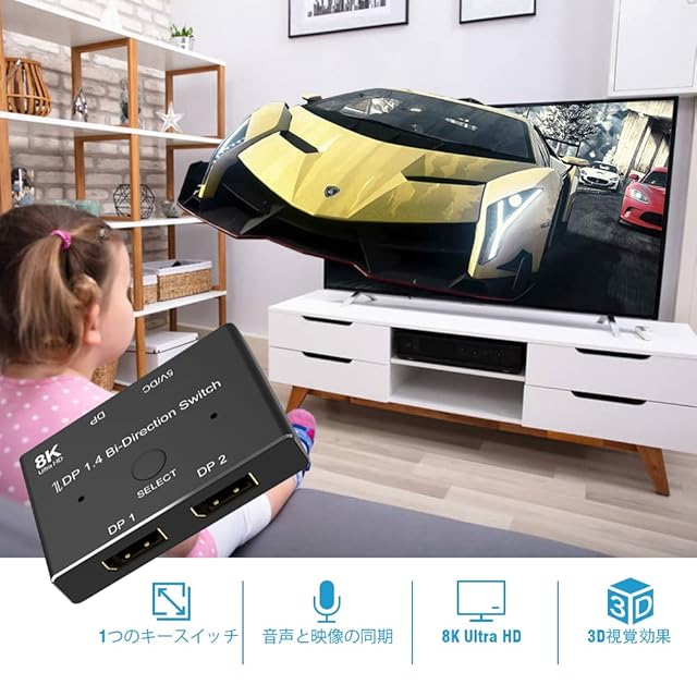 FDBRO 8K DisplayPort 切替器 DP 1.4 スイッチャー 双方向 8K@60Hz 4K@120Hz 2入力1出力/1入力2出力 DP セレクター、コンピューター/HDテレビ/プロジェクター/モニターなど対応