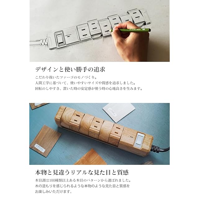 ✅おしゃれで美しい木目調デザインは、お客様が手にとった瞬間にはじめて質感を感じることができます。1つ1つ丁寧に作り込み自信を持ってご提供するファーゴ商品を、きっとご満足いただけるはずです。コードの長さは使い勝手が良い1.8m。コードの色は茶色。