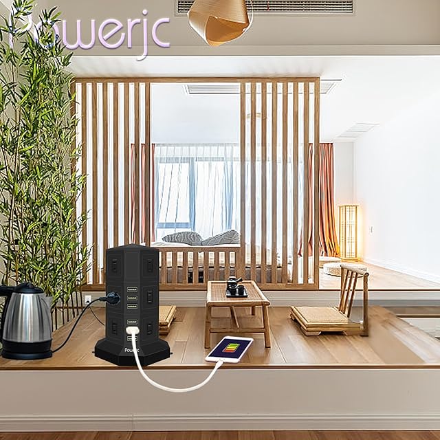【タワー式設計】:3dタワー式タップ、多角的なコンセント、使い胜手よりになります。6つのUSBポートと12つのACコンセントを搭載し、一度に複数の機器に給電、充電することが可能。デスクの上や家庭での使用に最適です。変圧機能がありません。