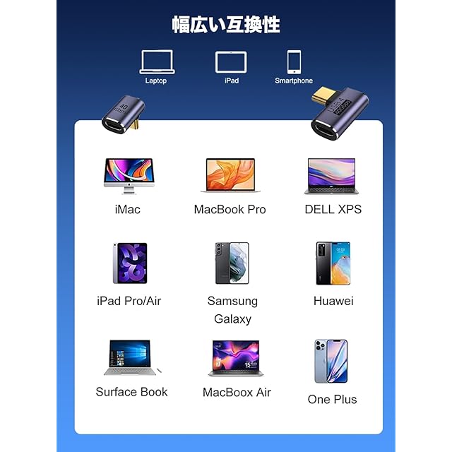 【40Gbps高速伝送&4K/8K映像対応】最新のtype-c4.0を採用し、最大40gbpsの伝送速度に対応しており、usb3.1の4倍の高速化を実現しています(理論上は可能ですが、状況に応じて)。このUSB Cアダプタを使えば、最大で8K@60Hz鮮明で滑らかな解像度に対応し、超高画質の解像度を楽しむことができます。USB3.1、1.1、USB2.0の下位互換機器です。注:1、40Gbpsは理論上の最大伝送速度です。実際の速度は、PC端末やケーブルなどの影響を受けので、実際の伝送速度を参照してください。