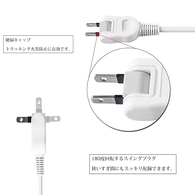「安心·安全機能」トラッキング現象による火災を防ぐ絶縁V-0規格PC素材を採用し、万一発熱した場合でも融解しにくく、電気火災を防止します。洗練された回路設計および高品質の銅線を採用して、過熱、過電流、過負荷、過充電からお使いの家電を守り、安全で頼りになるタップです。