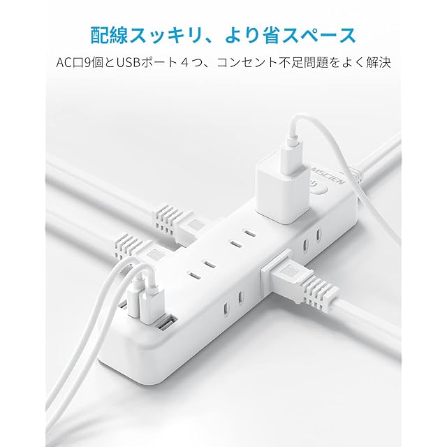 Mscienエムサイン 延長コード 2m 電源タップ usb付き 9個AC口 4個USBポート テーブルタップ oaタップ たこあしコンセント 一括スイッチ付き usb コンセント 分岐 蛸足コンセント | AVENIR