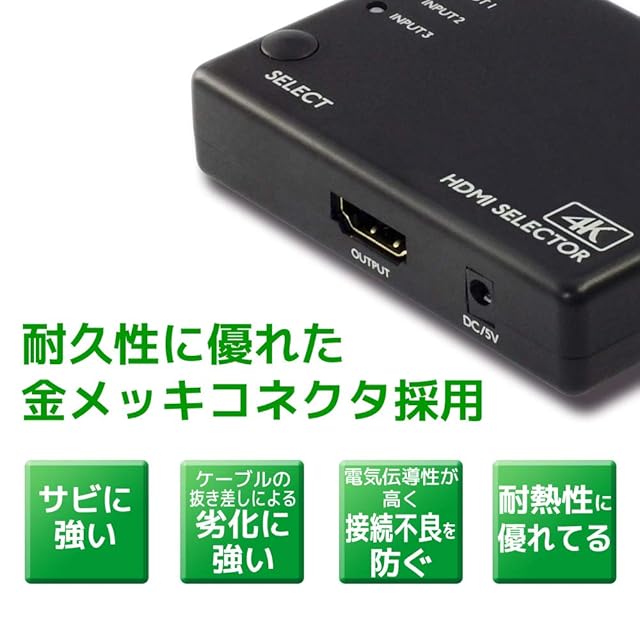【 サビに強い金メッキコネクターを採用 】 本製品のコネクターには、酸化(サビ)に強く、信号伝達の信頼性が高い金メッキ端子を採用しています。