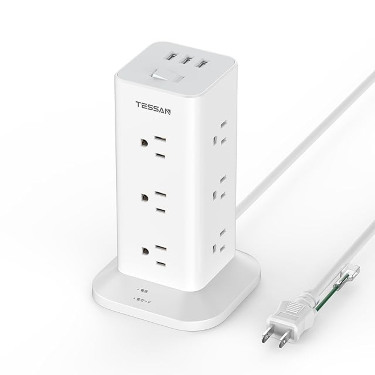 電源タップ タワー 延長コード 2m TESSAN 12個AC コンセント 3USBポート OAタップ テーブルタップ 蛸足コンセント 雷ガード アース付き タワー型 2ピン/3ピン適用 | AVENIR