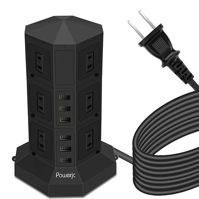■【3d設計】:タワー式タップ、多角的なコンセント、使い胜手よりになります。6つのUSBポートと12つのACコンセントを搭載し、一度に複数の機器に給電、充電することが可能。デスクの上や家庭での使用に最適です。変圧機能がありません。