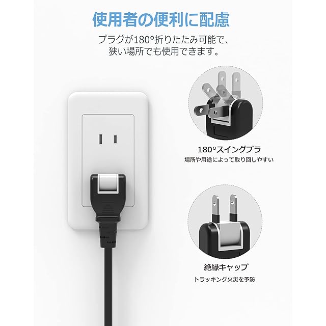 【安全的なたこ足配線】過負荷保護機能付き-作動すると、自動的に電源をオフし、事故防止できます。トラッキング火災や感電防止のために絶縁カバー付き、電気火災防止のために耐熱性に優れた樹脂&二重被ふくコード付き、安心安全な電気タップです。