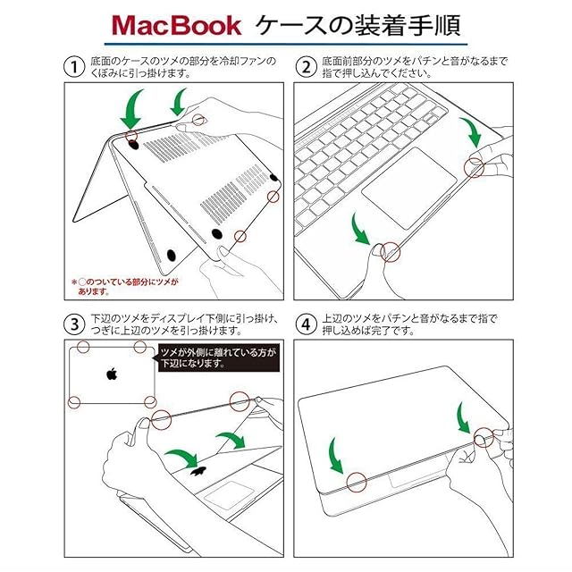 【便利自由】:機器にぴったり合わせて、とりつけたり、とりはずしたりすることが簡単にできます。何度開閉してもMacBook本体の邪魔になりません。