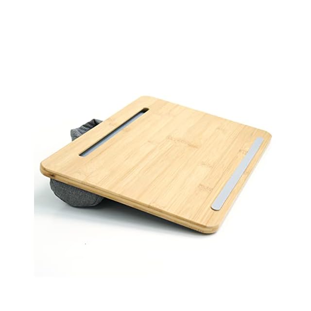 ひざに乗せて使える便利などこでもテーブル! 机がないところでも作業や読書が快適になる、ひざ上クッションテーブル。 テーブル裏面のクッションが、ひざにかかる負担を軽減します。 すべり止めとスロットにより機器が安定して操作がしやすくなるので、作業も快適です。放熱性に優れている竹素材を使用しています。
