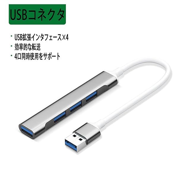 【4 in 1 USB 3.0ハブ】フロントエンドUSB 2.0の3ポートに加え、側面にUSB 3.0の1ポートを備え、幅広のUSBデバイスへの接続を容易にしています。在宅勤務やゲームをするときに、USBハブ不足を簡単に解決できます。 【耐久性抜群】アルミニウム合金製ハブは堅牢性が十分で、全体の質感も高級感があります。また、ケーブルとポートに強化設計と耐熱設計を施し、放熱性能も完備しており、過電圧、過電流、短絡を防止でき、複数の機器の使用においても安定した伝送を実現している。 【高速データ転送】ハブのUSB 3.0を介して5 Gbpsのデータを高速転送できます。高速USB 3.0の転送速度はUSB 2.0の約10倍(理論値)で、HDムービーは一瞬で転送完了。USB 2.0、USB 1.1の下位互換接続も可能です。USBポート数が足りない!困っている人におすすめのUSBポートが増設されました。 【設置が簡単・持ち運びに便利】電源不要・軽量設計で旅行や出張に便利!また、アプリケーションやドライバは必要なく、デバイスを挿入するだけで使用できます。とてもシンプルで便利で、ゲーマーには欠かせないものです。 【広範な交換性】USB-Aインタフェースを搭載したデバイスで、すべてをサポートできます。最新のChromebook/Huawei/Dell/HP/Lenovo/AUS/Smsung/LGなどの端末に対応しています。