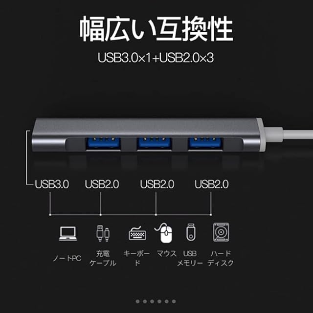 【4 in1高速拡張 】 USBハブ Type C 4ポートは、単一のタイプC ポートを拡張し、最大四つのUSB Type-Aポートを接続でき、さまざまなUSB3.0または2.0アクセサリと周辺機器で使われます。4つのUSB-Aポートは同時に動作できます。「USB-A変換コネクタを付属します, ポート拡張:ノートPCまたはデスクトップPC」