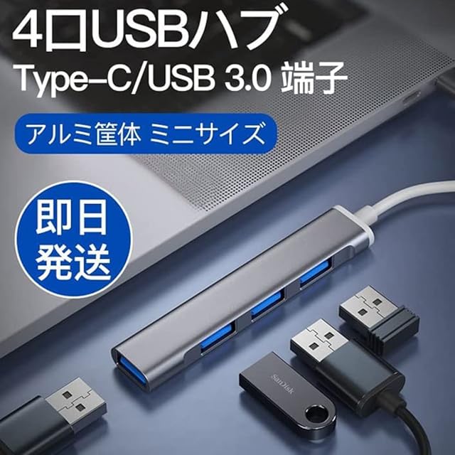 USBハブ USB3.0 バスパワー 4ポート ウルトラスリム 軽量 コンパクト USB ハブ Windows/Macなど対応 バスパワー 軽量 コンパクト MacBook/iMac/Surface Pro 等 ノートPC 他対応 USBハブ テレワーク リモート 在宅勤務 (C-A変換アダプタ付き)