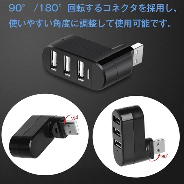 【回転可能】USBハブは90°/180に回転できます。使いやすい角度に調整して使用可能です。