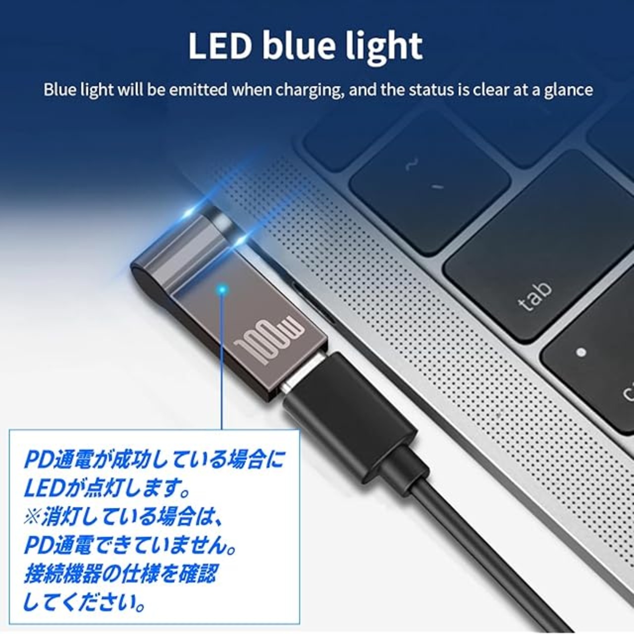 【用途・特徴】 □ACアダプタのDCプラグをTypeCに変換してケーブルを接続し、急速充電器(PD対応)に接続し給電できるようにする変換アダプタ。 □重くてかさばるACアダプタの代わりにコンパクトなPDアダプタとこのアダプタとケーブルになり、持ち運びやノートPC周りの配線がスッキリできます。 □100W 20V 5A高出力に対応しているので高速充電が可能になります。 ※ノートPCが20V、PD充電器とTypeCケーブルが100Wに対応している必要があります。 □高級感のあるアルミボディで放熱にも効果があります。 □PD通電してるかどうかはLEDの点灯で分かるようになってます。