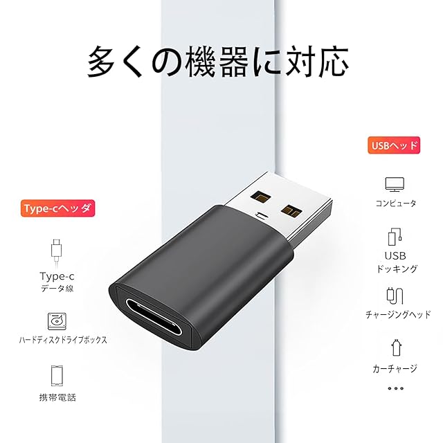 【5 Gbps高速データ転送&充電】USB 3.0 Type Cのコネクタをサポートし、50秒以内に1 Gムービーを転送し、携帯電話とタブレットの同期充電をサポートする。USB PD急速充電プロトコルをサポートし、イヤホンとビデオ出力をサポートする。<br>【利便性】軽量、超小型で持ち歩きに最適。ドライバをインストールする必要はなく、USB-Aポートを備えたマシンを挿入するだけで簡単に使用できます。隣接するUSBポートに干渉しにくい超コンパクト設計を実現。<br>【幅広い互換性】ほとんどのUSB-CデバイスとUSB-Aデバイスを簡単に接続できます。※注意※このusb type-c変換アダプタのオスはUSB-A、メスはType-Cです。<br>【耐久性】外殻はアルミニウム合金材質を採用し、抗酸化、耐食性があり、より耐久性がある<br>【パッケージ内容】USB-C&USB 3.0変換アダプターブラック×1個+シルバー×1個セット。