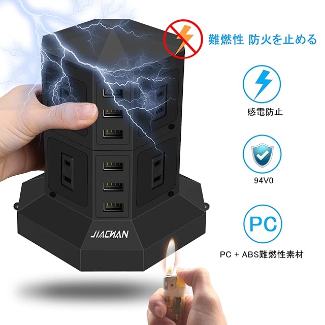 ●【PSE認証済】JIACHANタワー電源タップはPSE認証を取得し、関東経済産業省から届出済、安心してお使いいただける正規品です。(1年間の保証)保証期間以内何か品質の問題が起こったら、ぜひお気軽にメールにてご連絡くださいますようお願い申し上げます。