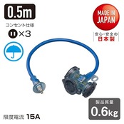 ハタヤ (HATAYA) 延長コード 屋外用 (防雨型) コード0.5m 太さ2.0㎟ コンセント3個 コンセント防雨キャップ付き パイロットランプ内蔵 エクスバンド付 家庭用 工場用 軽作業 ショートタップ(0.5m) FX-005(B) ブルー | AVENIR