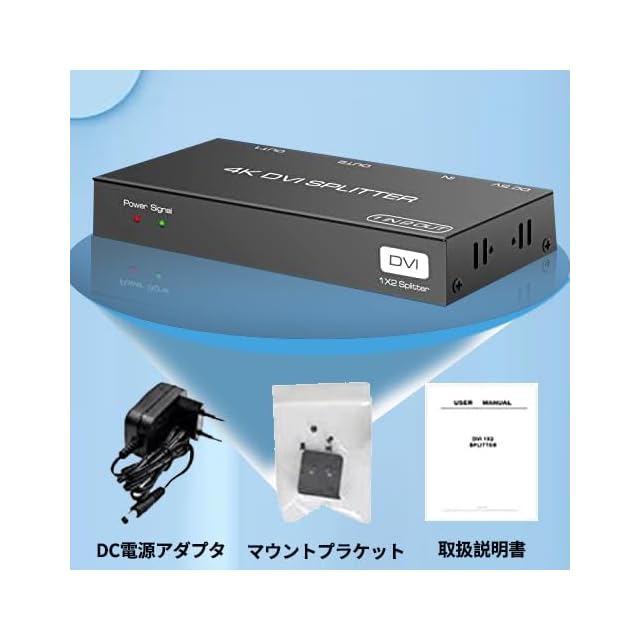使い勝手性が抜群: 接続だけで利用可能なので、非常に使いやすいです。パッケージ内容:電源アダプタ、DVI分配器本体、取扱説明書。