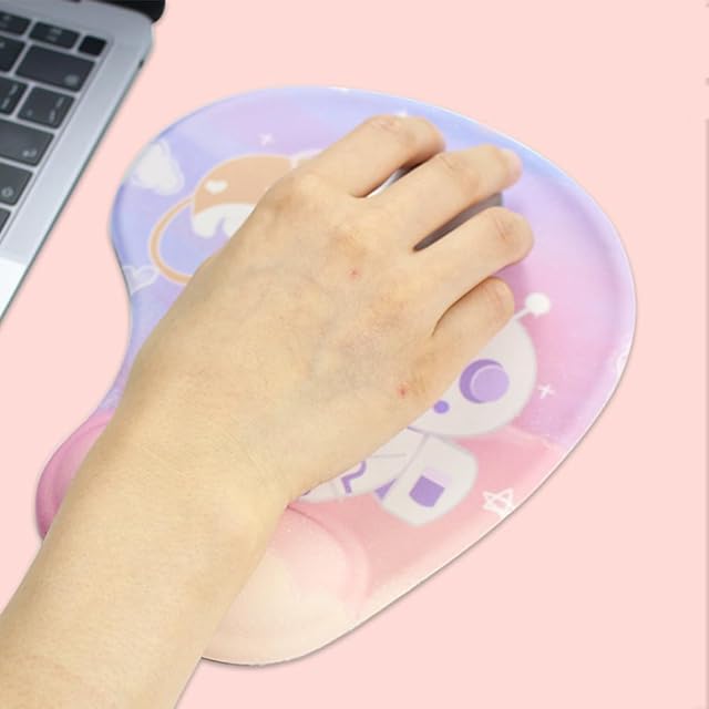 マウスパッド リストレスト一体型 マウスマットハンドレスト付き おもしろい宇宙飛行士と猫のパターン 腕置き ゲル充填 快適 手触り良い 人間工学 滑り止め 可愛い柄 23cm(虹色)