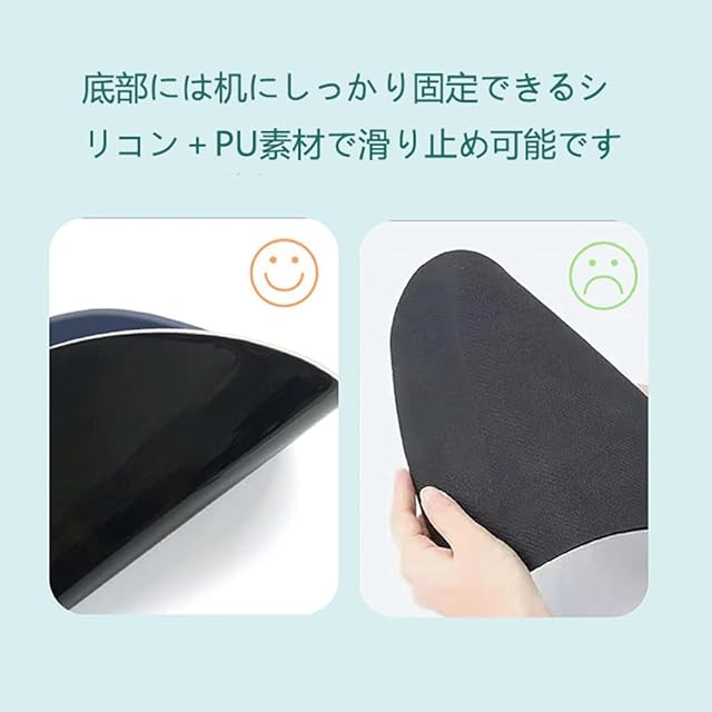 【底部に滑り止め加工】デスクと接触する底面は半粘着PU素材を採用し、お使い中の滑りが抑え、滑りらず静かな操作感を実現します。※ご使用になる前に、底に張っている保護フィルムを取り外して使用してください。