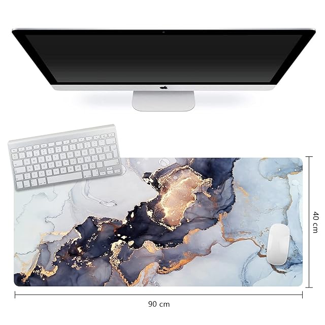 耐久性良い・多用途:ロックエッジ部分が丸く縫いこまれているため耐久性にも優れおり、折り畳んだり丸めたりできて持ち運びが簡単です。おしゃれなブルー、白、金色の流体柄とはっきりした図案プリントもポイント!デスクマットとしては、お部屋やオフィス、ゲームルームのインテリアにも最適です。