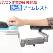 マウスやキーボード操作時に正しい姿勢をサポートするアームレスト。肘や腕への負担を軽減し、長時間のパソコン操作に最適です。