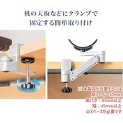 机の天板などにクランプで固定する簡単取り付け。左右対称形状なので左利きにも対応。