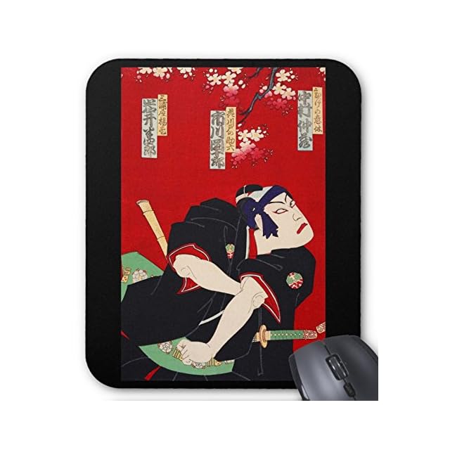 市川團十郎『 花川戸の助六 』のマウスパッド:フォトパッド( 浮世絵シリーズ ) (黒地)