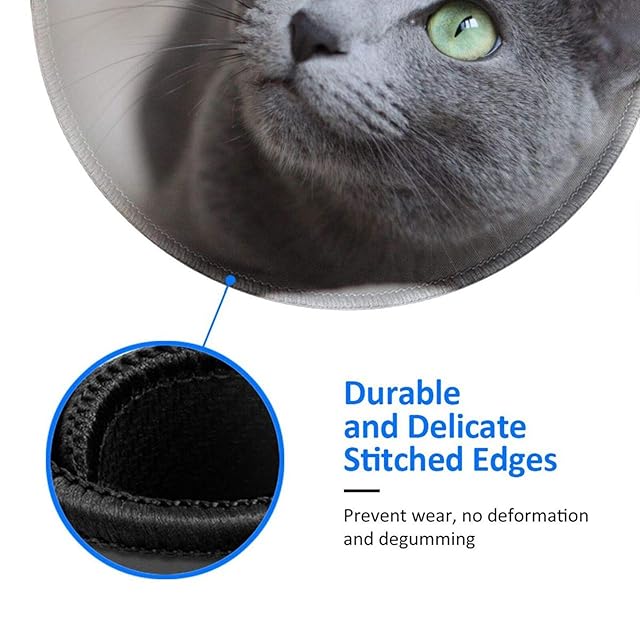 DADABULIU マウスパッド 円形 小形 ロシアンブルー ネコ 猫 猫柄 灰色 ゲーミング ゴム底 光学マウス対応 滑り止め エレコム 耐久性が良い おしゃれ かわいい 防水 サイバーカフェ オフィス最適 適度な表面摩擦 直径:20cm