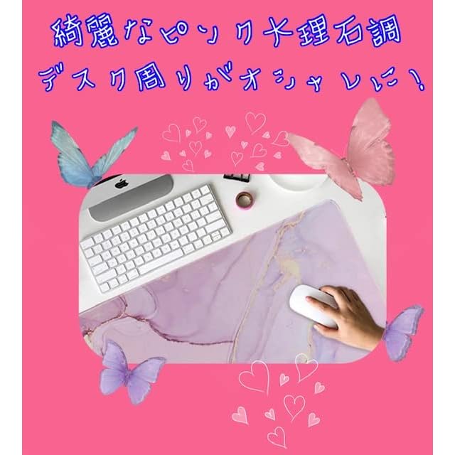 大理石調プリントのお洒落なマウスパッドです。<br/> 北欧風の可愛いデザイン。<br/> 60cm×30cmと大きめで存在感がある使いやすいマウスパット。<br/> 厚さは3mmととても厚く高級感があります。<br/>ピンク石をベースとした高解析プリント柄なので、本物の大理石の雰囲気が味わえます<br/>アウトラインもきめ細やかな仕上げ縫い<br/>