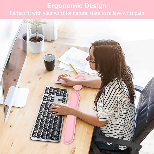 【優れた形状とサイズ】カーブ形状が手首を直線に保ち、関節や手首の問題を回避し、肘と肩のストレスを解放します。 17 x 3.5 x 1.2インチのキーボードリストレストパッドと5.4 x 3 x 0.9インチのマウスリストレストパッドは、手と手首を快適に支えます。さまざまなサイズのコンピューター、ノートパソコン、キーボード、マウスに対応。